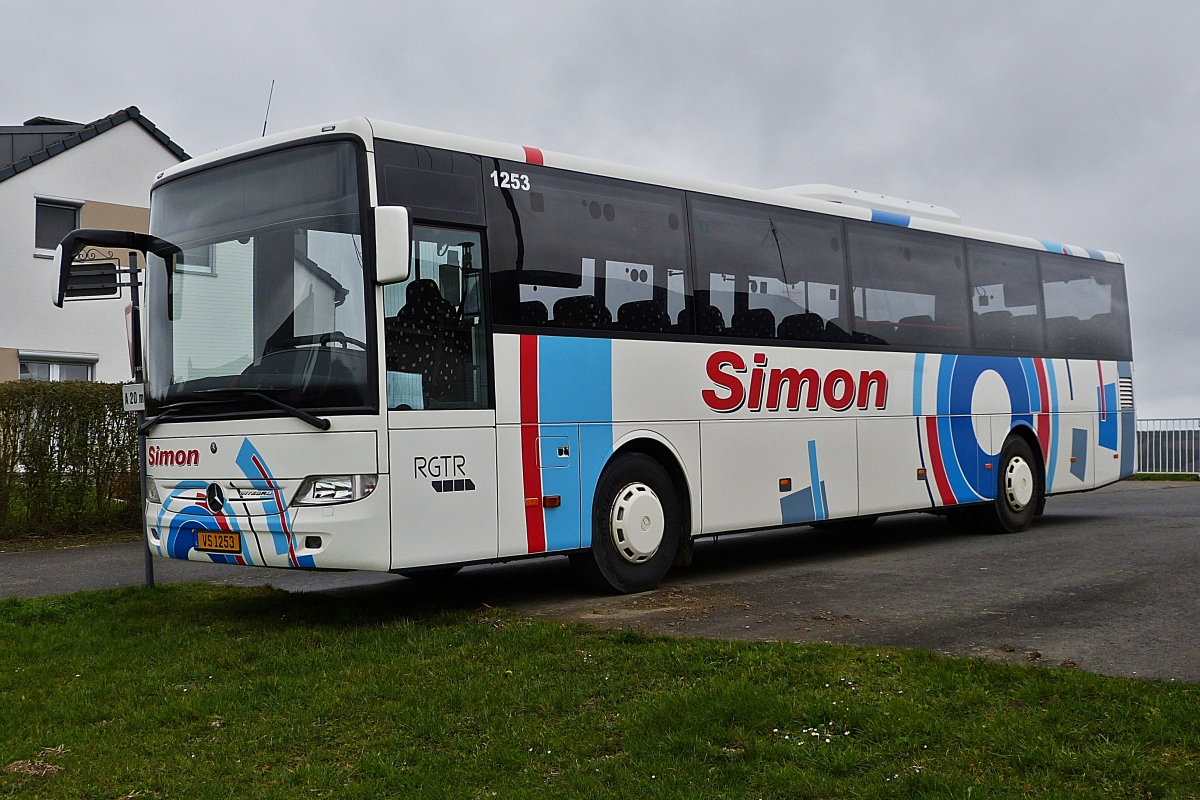 VS 1253, Mercedes Benz Integro von Voyages Simon, gesehen auf einem Parkplatz in der Nähe von Wiltz. 13.03.2020