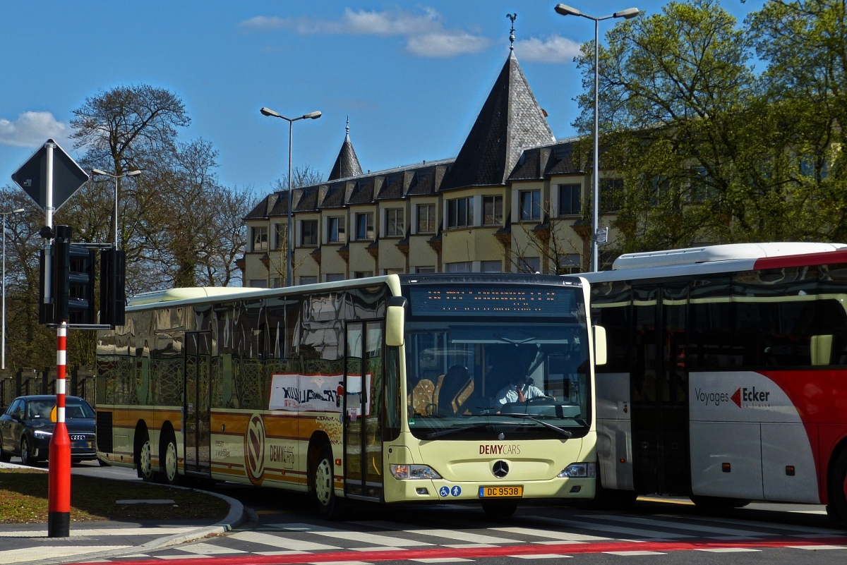DC 9538, Mercedes Benz Citaaro von Demy Cars, hält in der Stadt Luxemburg bei einer Ampel. 29.03.2019