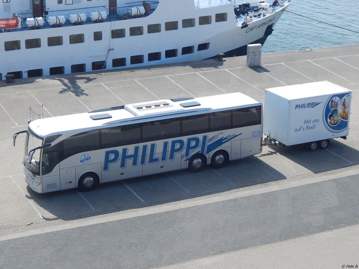 Mercedes Tourismo von Philippi aus Deutschland mit Anhänger im Stadthafen Sassnitz am 03.06.2018