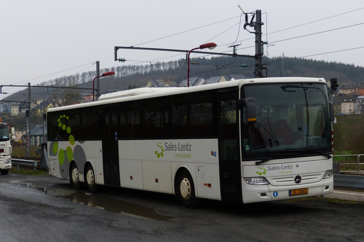 SL 3266, Mercedes Benz Integro von Sales Lentz, bei der Einfahrt zum Busbahnhof II in Ettelbrück. 14.03.2020