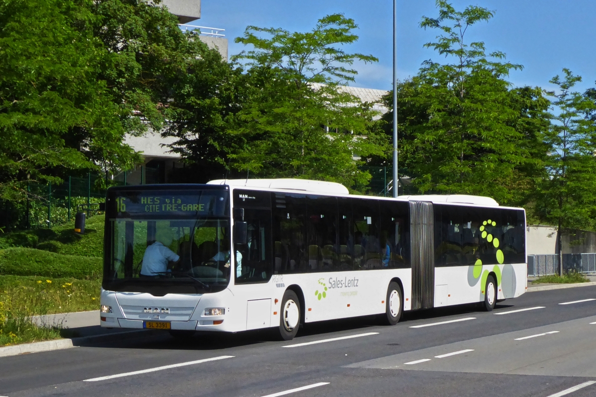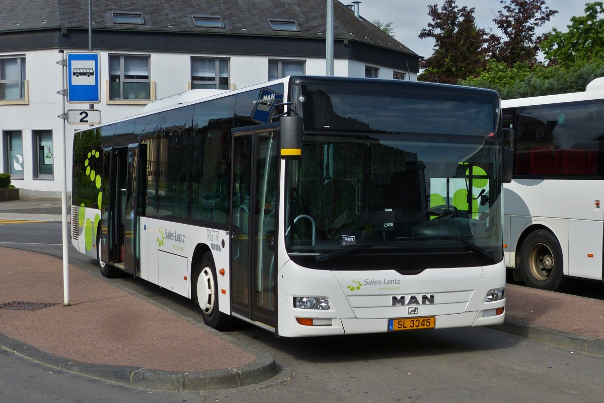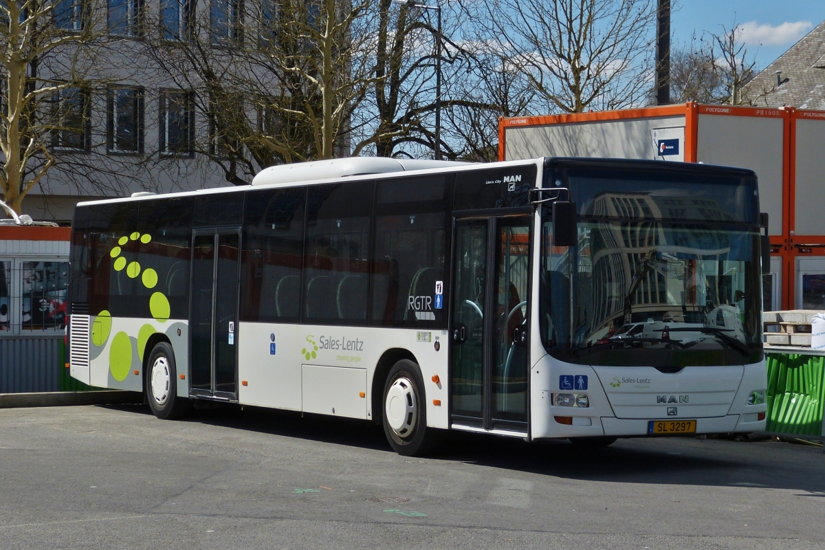 SL 3297, MAN Lion 's City, von Sales Lentz, wartet auf dem Busparkplatz in Luxemburg Stadt auf seinen nächsten Einsatz. 29.03.2019
