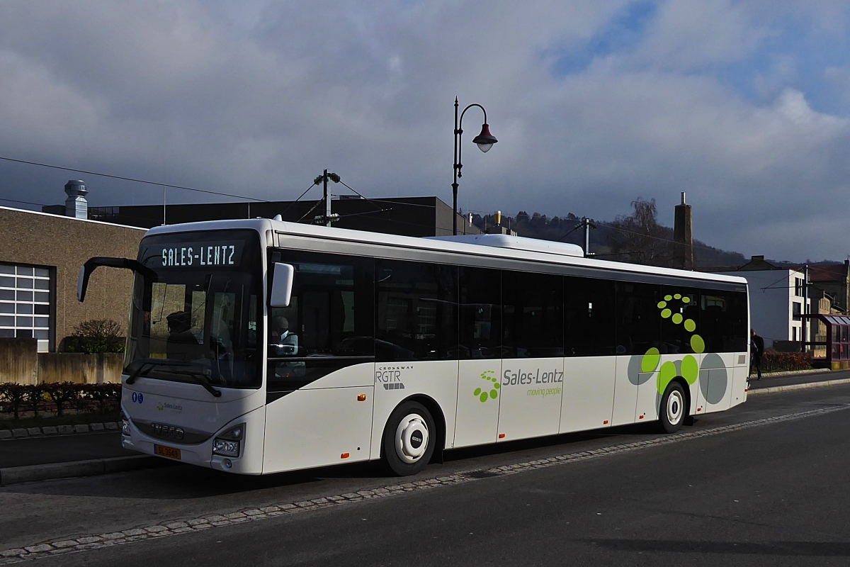 SL 3649, Iveco Crossway von Sales Lentz, ist am 07.03.2020 als SEV von Diekirch zur Stadt Luxemburg eingeteilt. Aufgenommen in Diekirch am Bahnhof.