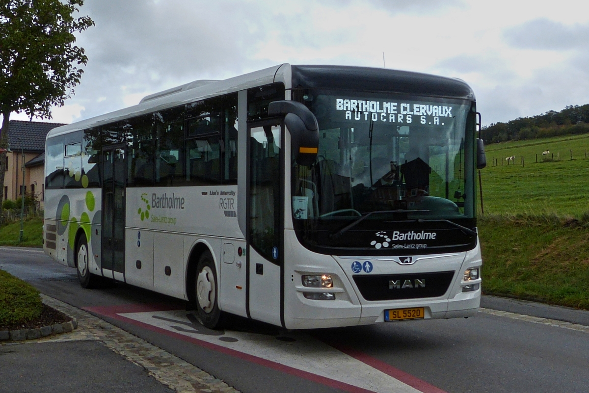 SL 5515, Setra S 415 UL von Sales Lentz, auf seiner Stammstrecke in der Nähe von Wiltz unterwegs. 10.12.2019
