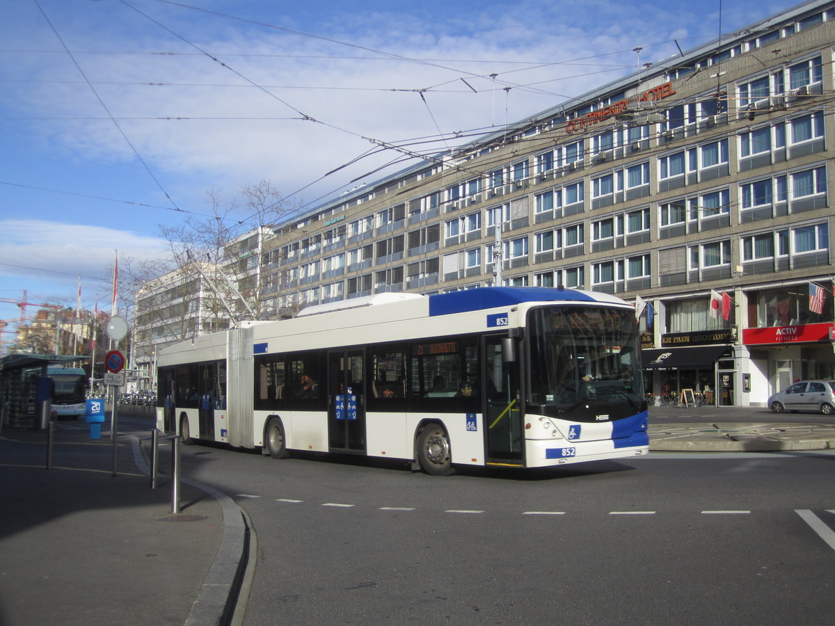 tl Nr. 852 (Hess Swisstrolley 3 BGT-N2C) am 23.2.2020 beim Bhf. Lausanne