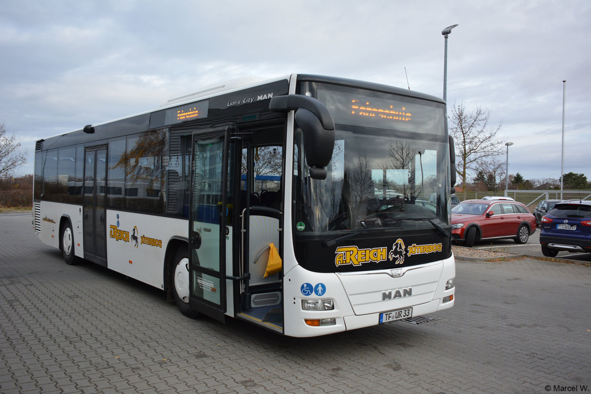 Dieser MAN Fahrschulbus (TF-UR 33) stand am 08.12.2018 auf dem regiobus PM Betriebshof in Stahnsdorf.
