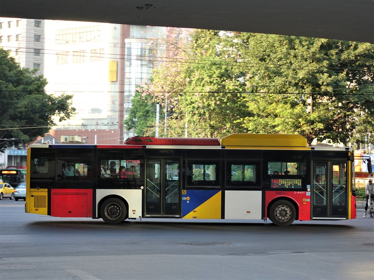 Yutong ZK6120BEVG1 trolleybus running on the line 105 across the old town. Because the power line is not covered here, the vehicle is running with the battery in this section of route.