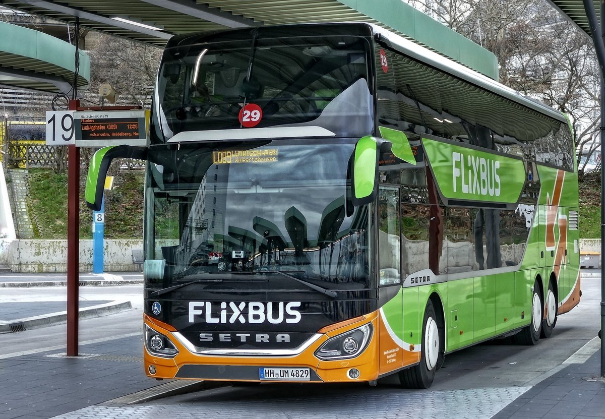 Setra S 531 DT von umbrella /Flixbus, kurz vor der Abfahrt am Berlin -ZOB im Februar 2020.