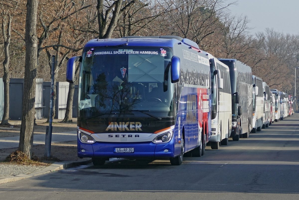 Setra S 517 HD -Mannschaftsbus vom 'Handball Sport Verein Hamburg' /Anker Reisen, hier in Berlin -Mitte im November 2019.