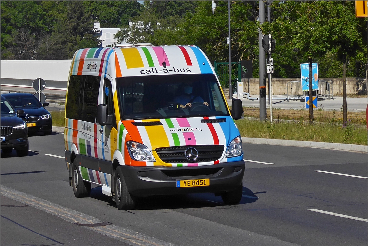 YE 8451, Mercedes Benz Sprinter vom VDL, als Rufbus unterwegs in der Stadt Luxemburg. Mai 2020