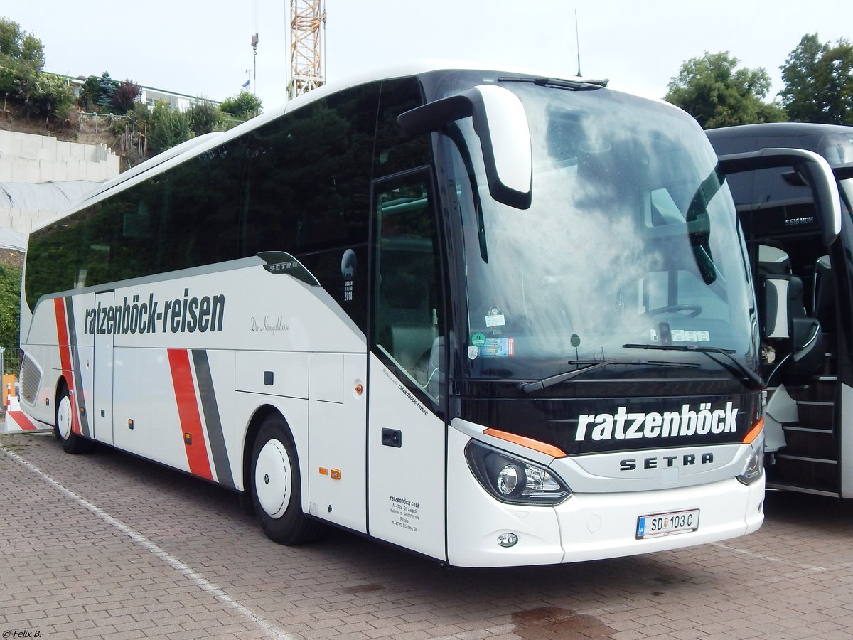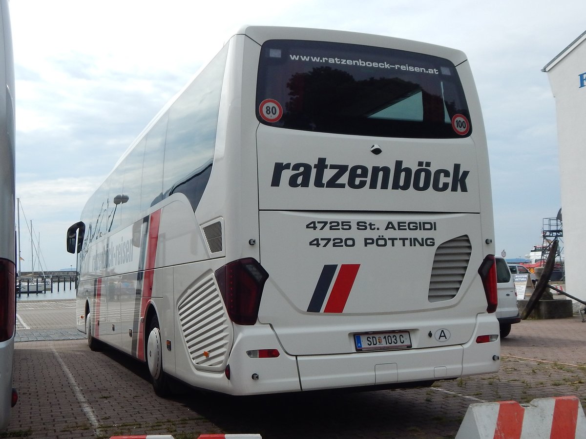 Setra 515 HD von Ratzenböck aus Deutschland im Stadthafen Sassnitz am 13.08.2018