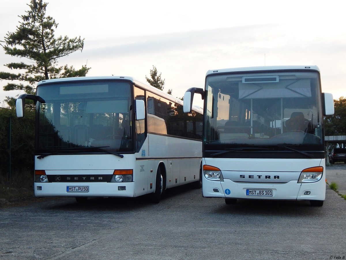 Setra 315 UL von Unger und Setra 415 UL von Becker-Strelitz Reisen aus Deutschland in Neubrandenburg am 18.08.2018
