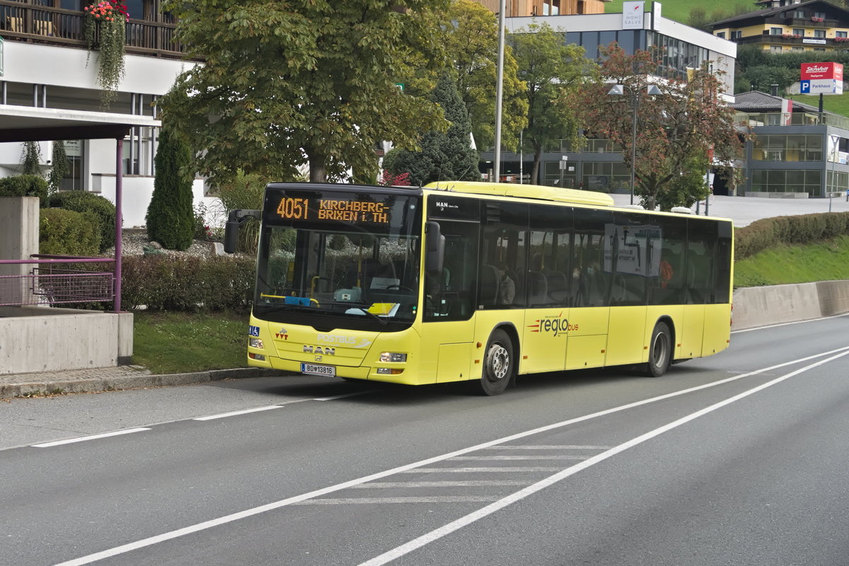 MAN Niederflurbus 3. Generation (Lion's City) von Postbus (BD-13803) als Linie 4051 an der Haltestelle Westendorf Bahnhof. Aufgenommen 2.10.2020.