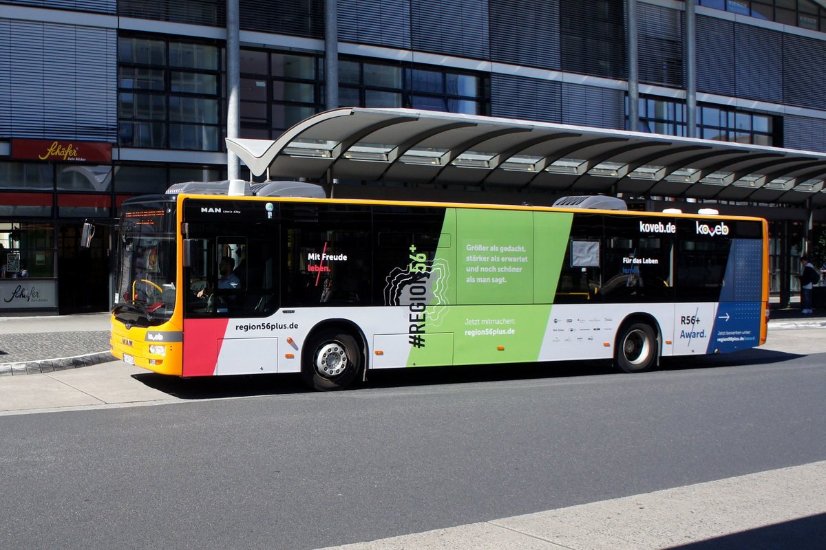 Stadtbus Koblenz: MAN Lion's City der Koblenzer Verkehrsbetriebe GmbH (koveb), aufgenommen im September 2020 am Hauptbahnhof in Koblenz.
