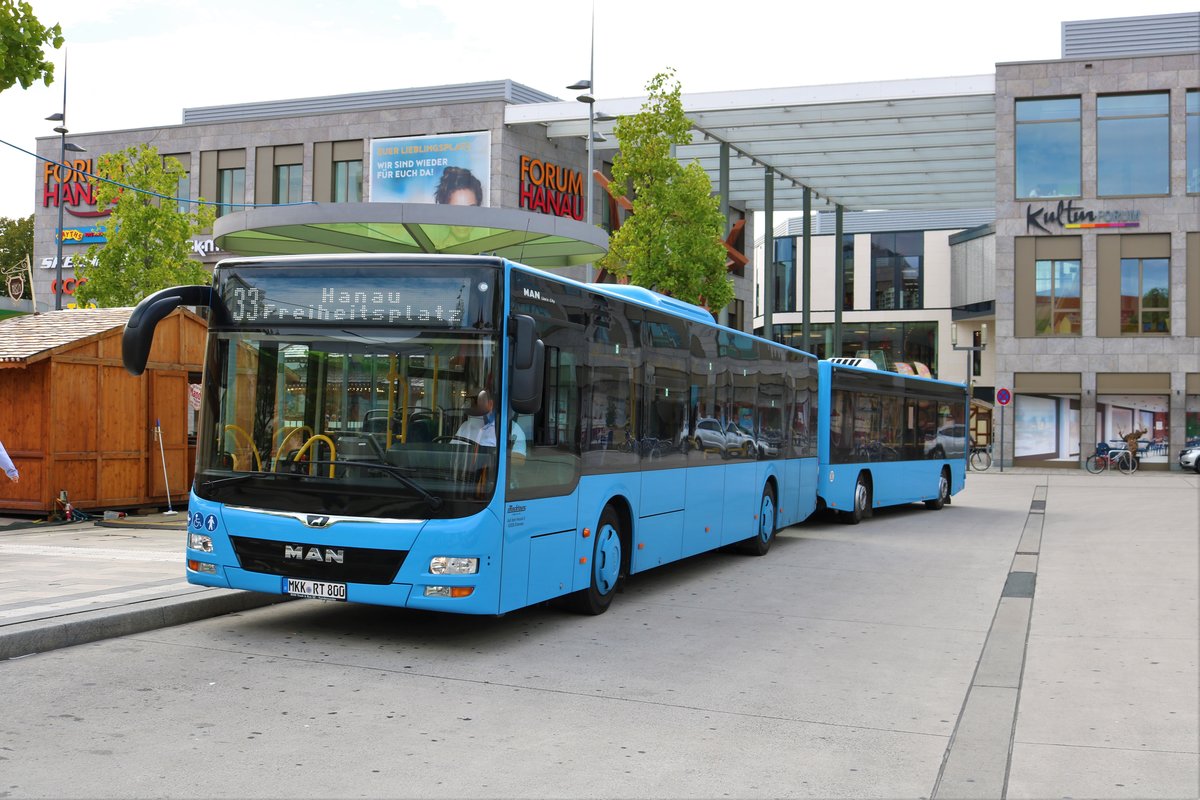 RackTours MAN Lions City mit Anhänger am 04.09.20 in Hanau Freiheitsplatz