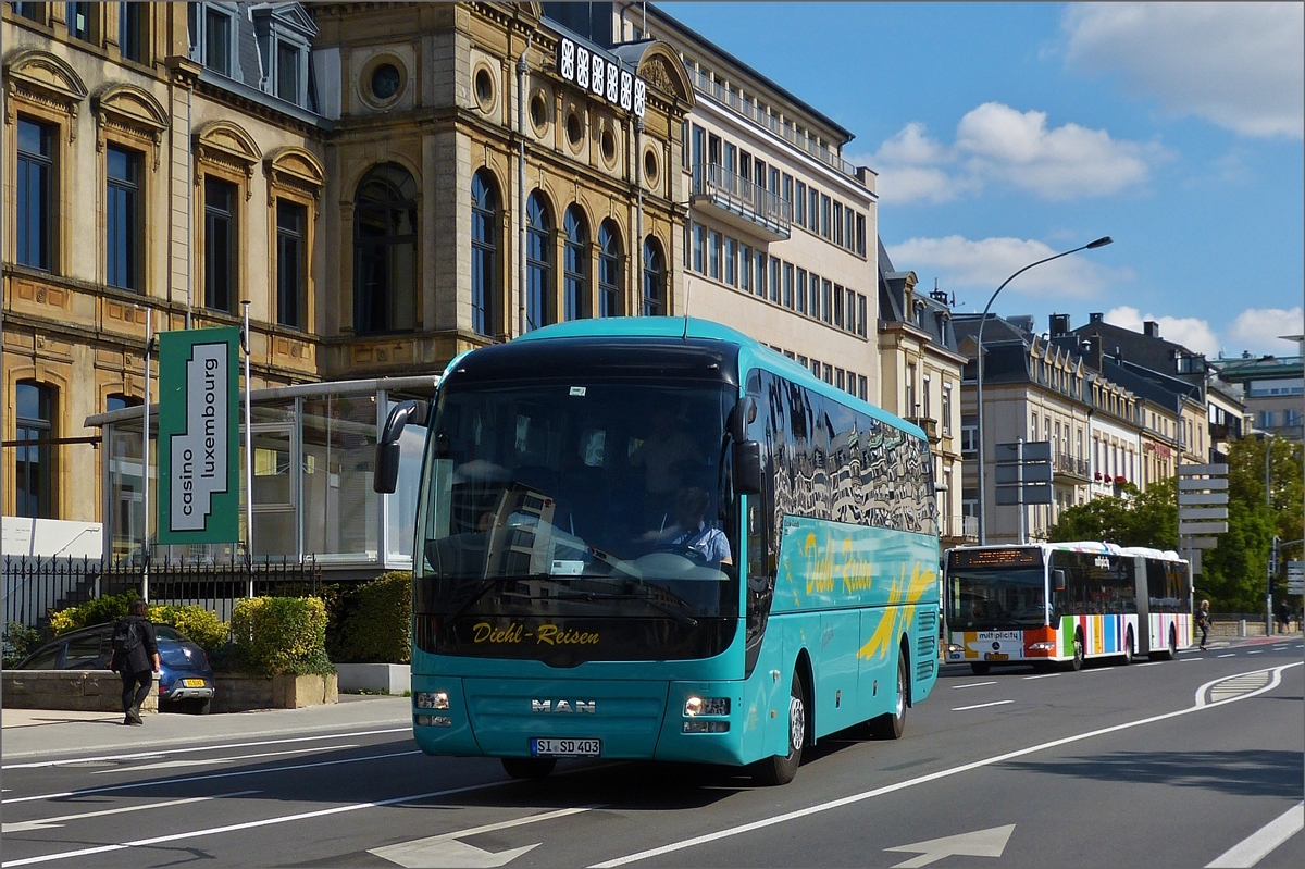 SI-SD 403, MAN Lion's Coach von Diehl Reisen aus Bad Laasphe, unterwegs in den Straßen der Stadt Luxemburg. 09.2020