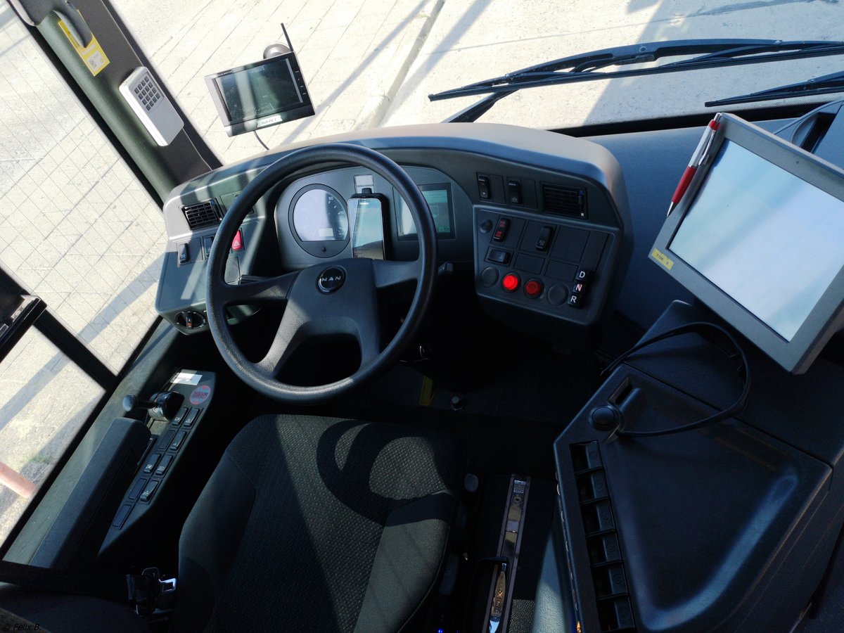 Der Fahrerarbeitesplatz eines MAN Lion's City der MVVG in Neubrandenburg am 07.08.2018
