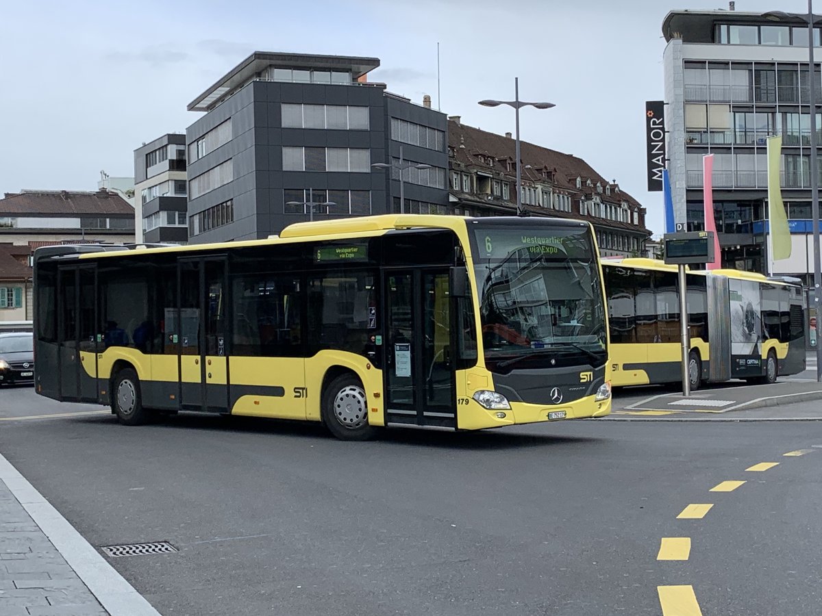 MB C2 179 der STI am 27.9.20 bei der Abfahrt beim Bahnhof Thun.