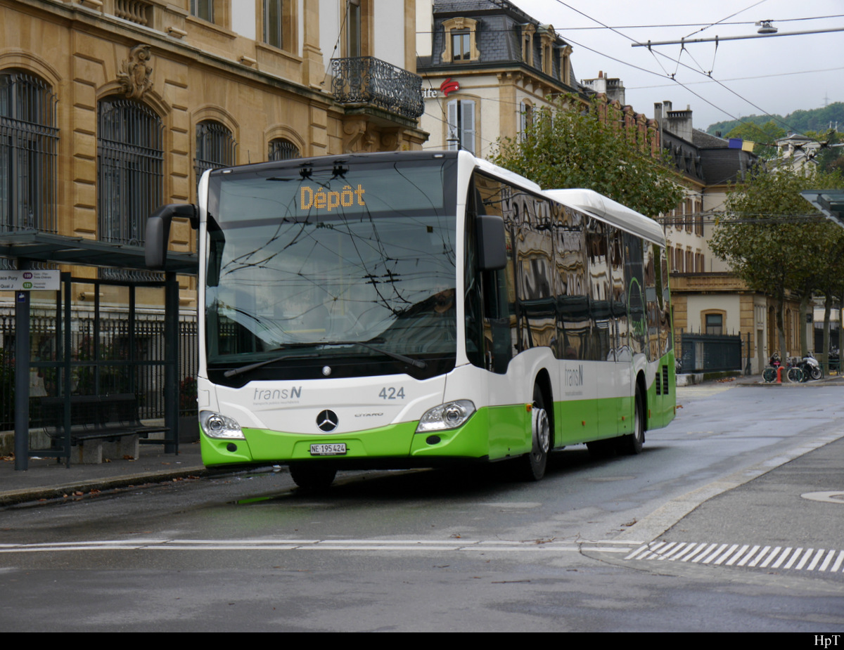 TransN Neuchatel - Mercedes Citaro Nr.424 NE 195424 unterwegs zum Depot in der Stadt Neuchatel am 21.09.2020