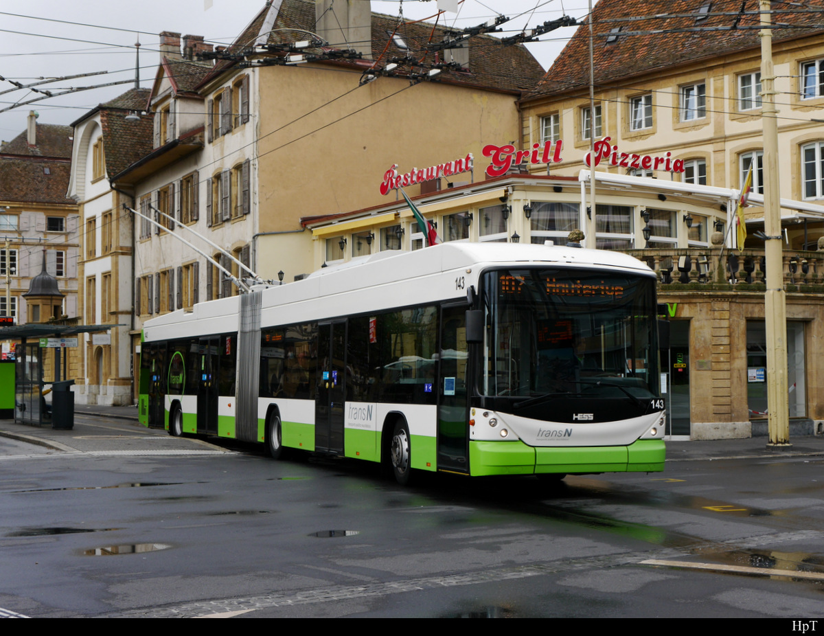 TransN Neuchatel - Trolleybus Nr.143 unterwegs auf der Linie 107 in der Stadt Neuchatel am 21.09.2020