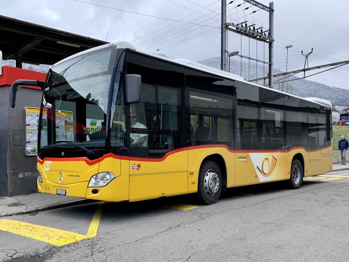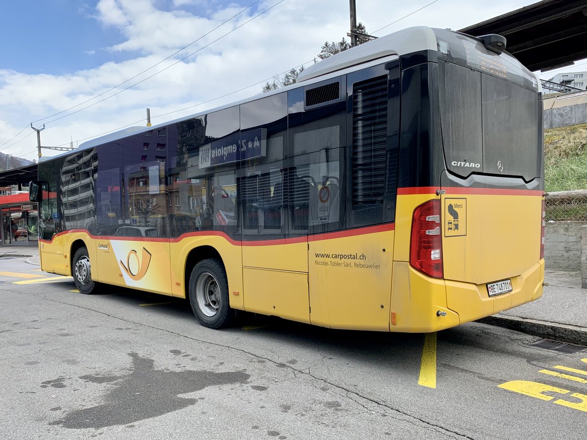 Mercedes Citaro der Post, auf der Linie 101, wartet an der Endstation beim Bahnhof Interlaken Ost. Die Aufnahme stammt vom 03.04.2021.