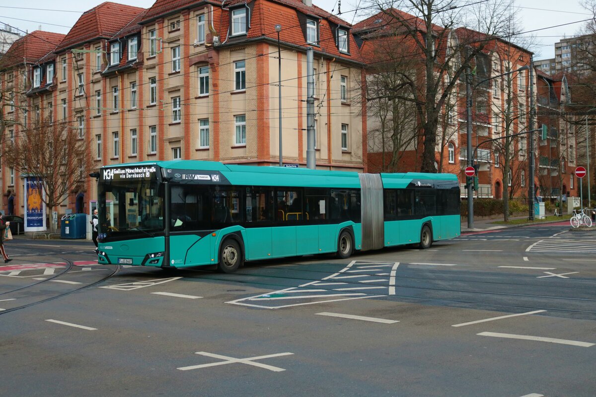 ICB Mercedes Benz Citaro 2 G Wagen 413 am 10.12.21 in Frankfurt am Main auf der Linie M34