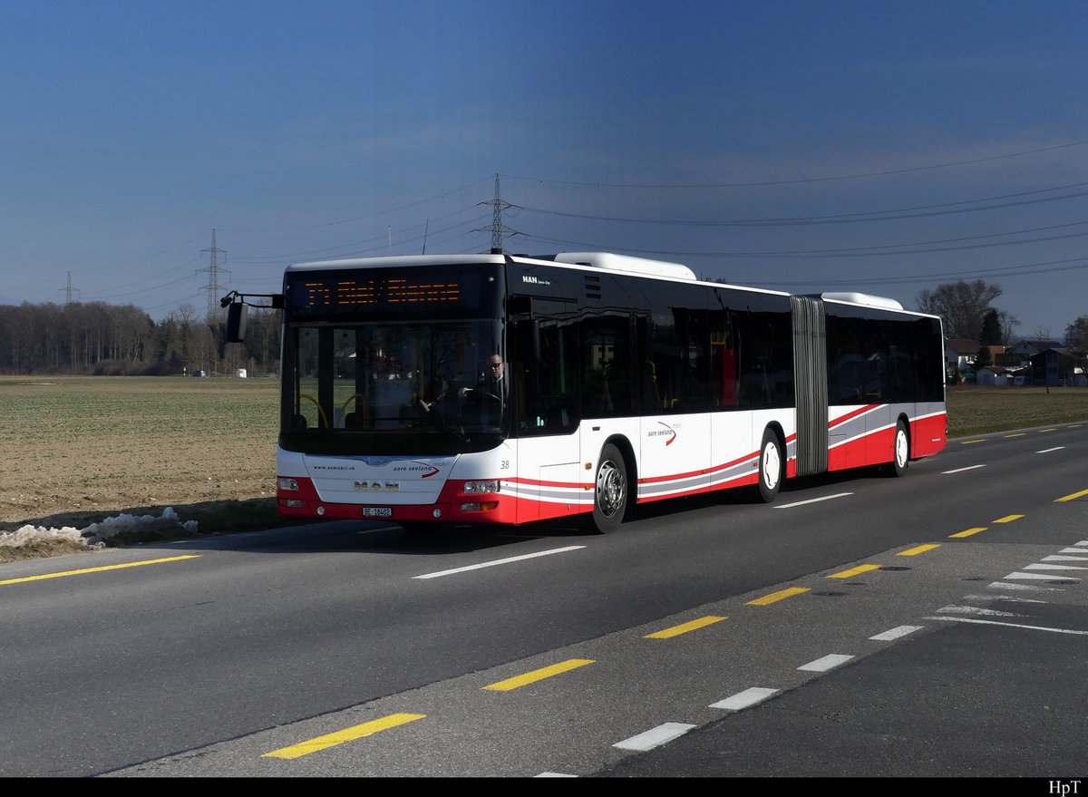 asm Seeland - MAN Lion`s City Nr.38 BE 18402 ( ex Postauto ) unterwegs auf der Linie 74 in Studen am 14.02.2021