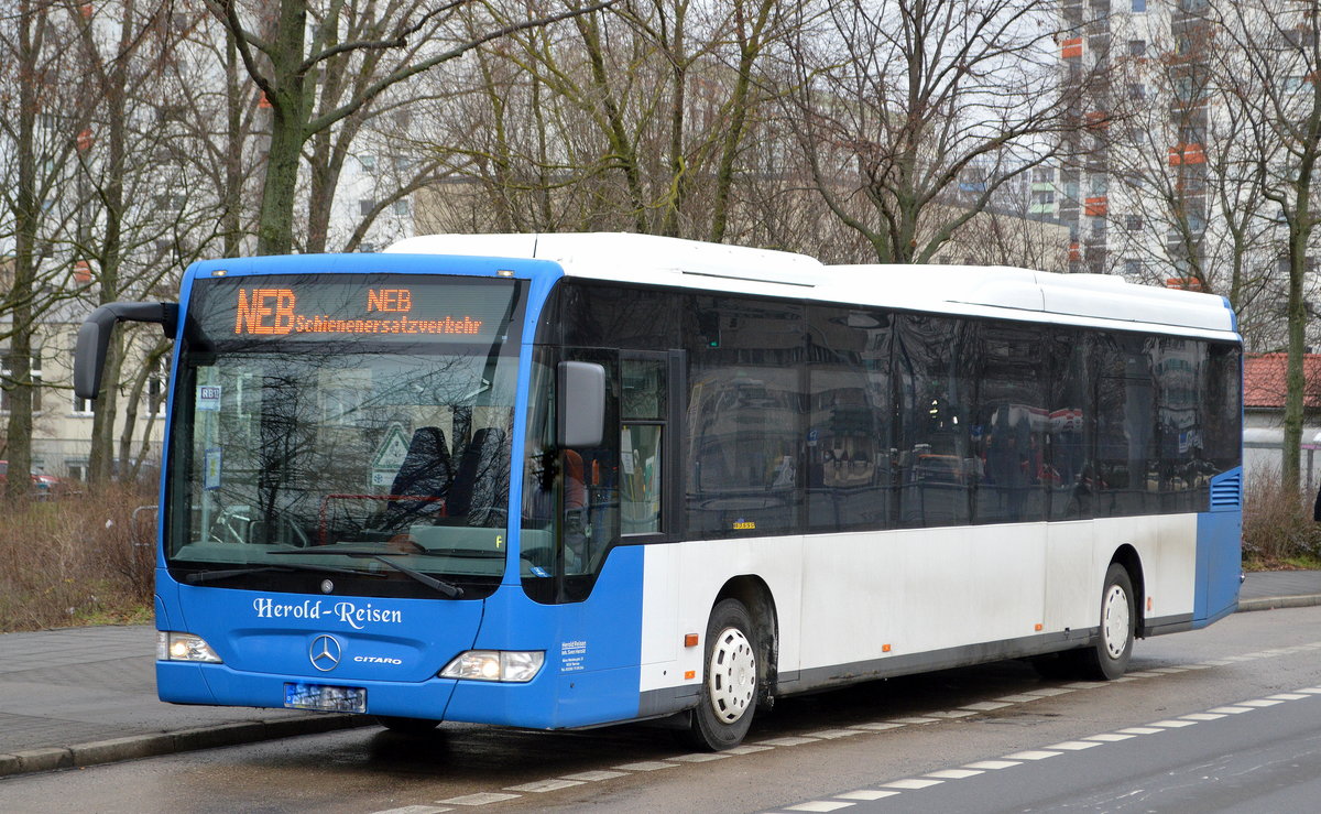 Die Fa. Herold Reisen stellt im Schienenersatzverkehr diesen Bus Typ Mercedes-Benz O 530 LE Ü (Citaro) zur Verfügung für die NEB Linie RB 12 am 19.02.21 Berlin Bahnhof-Hohenschönhausen.