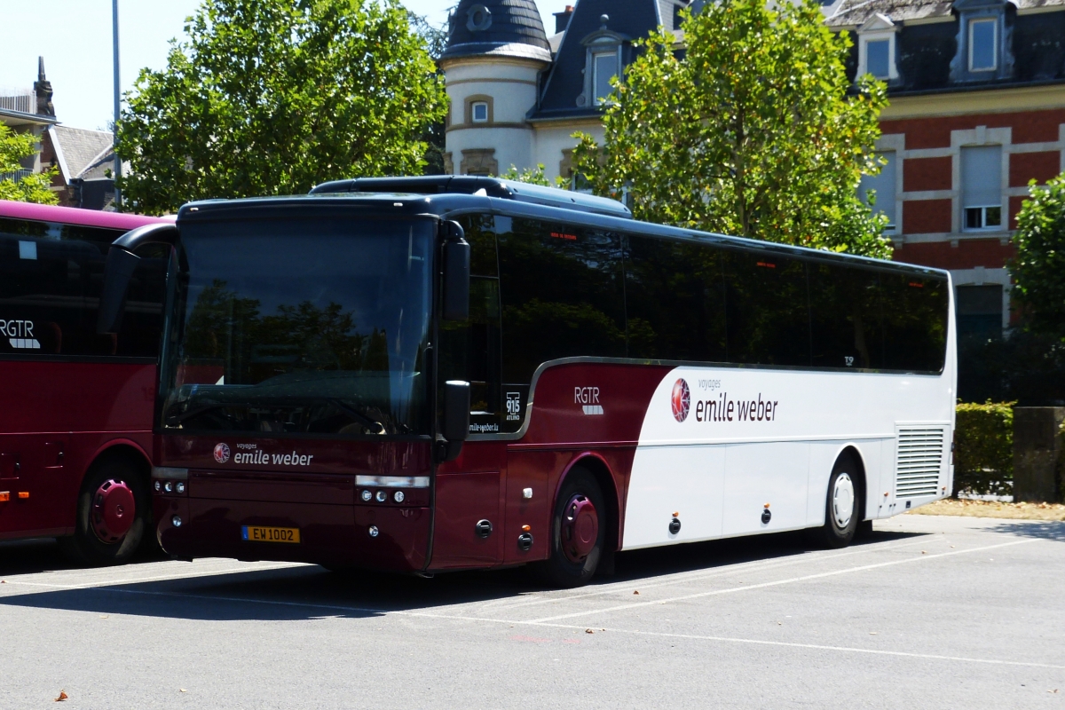 EW 1002, VanHool T 915, von Emile Weber, macht eine kurze Pause auf dem Bus Parkplatz in der Stadt Luxemburg. 27.07.2018