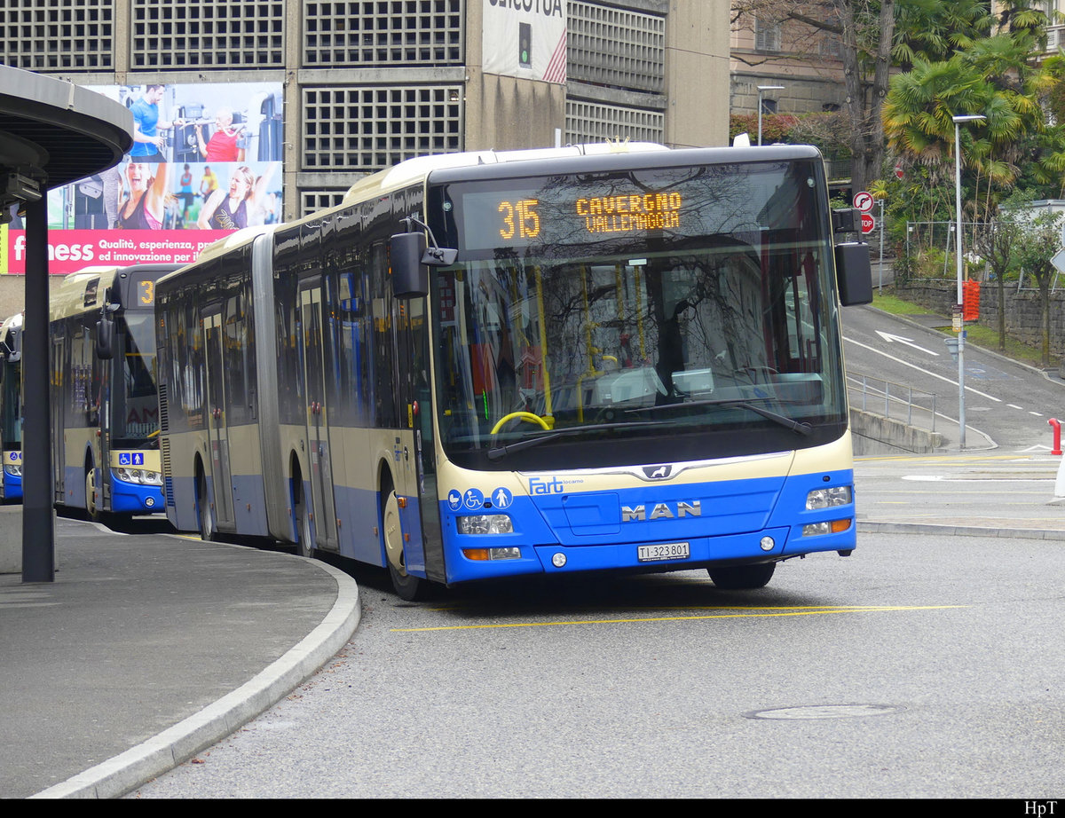 FART - MAN Lion`s City Nr.1 TI 323801 in Locarno vor dem Bahnhof bei den Bushaltestellen am 12.02.2021