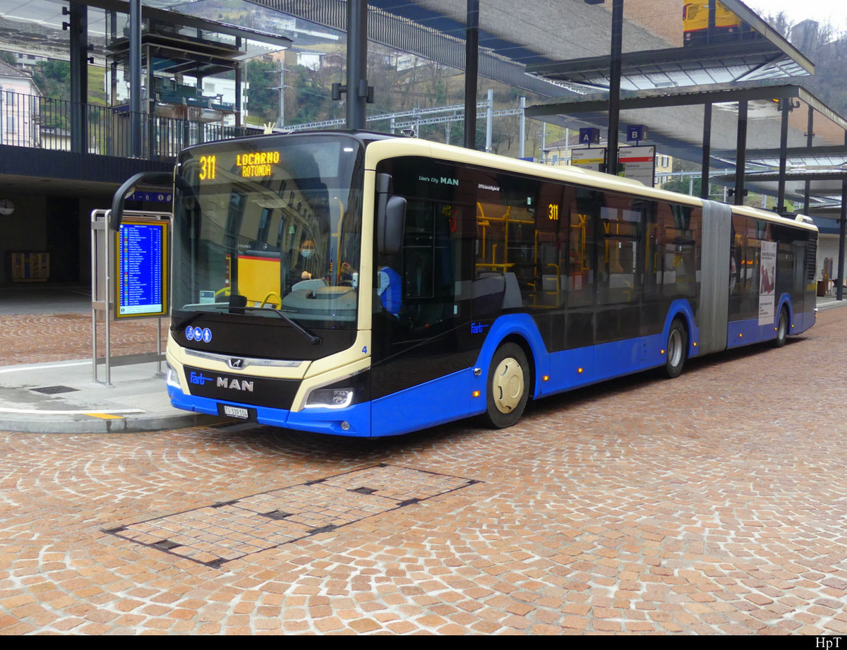 FART - MAN Lion`s City Nr.6 TI 339106 in Locarno vor dem Bahnhof bei den Bushaltestellen am 12.02.2021