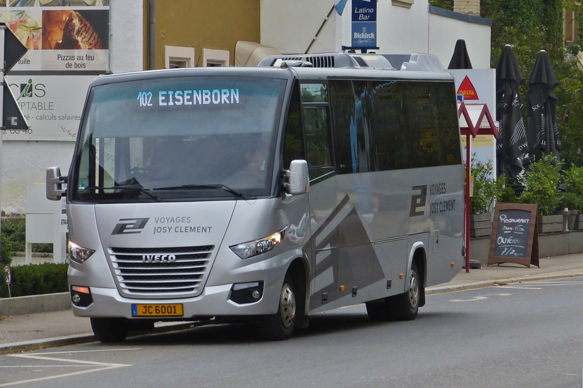 JC 6001, Iveco Rapido, von Josy Clement, gesehen an der Bushaltestelle in Lorentzweiler. 04.09.2018