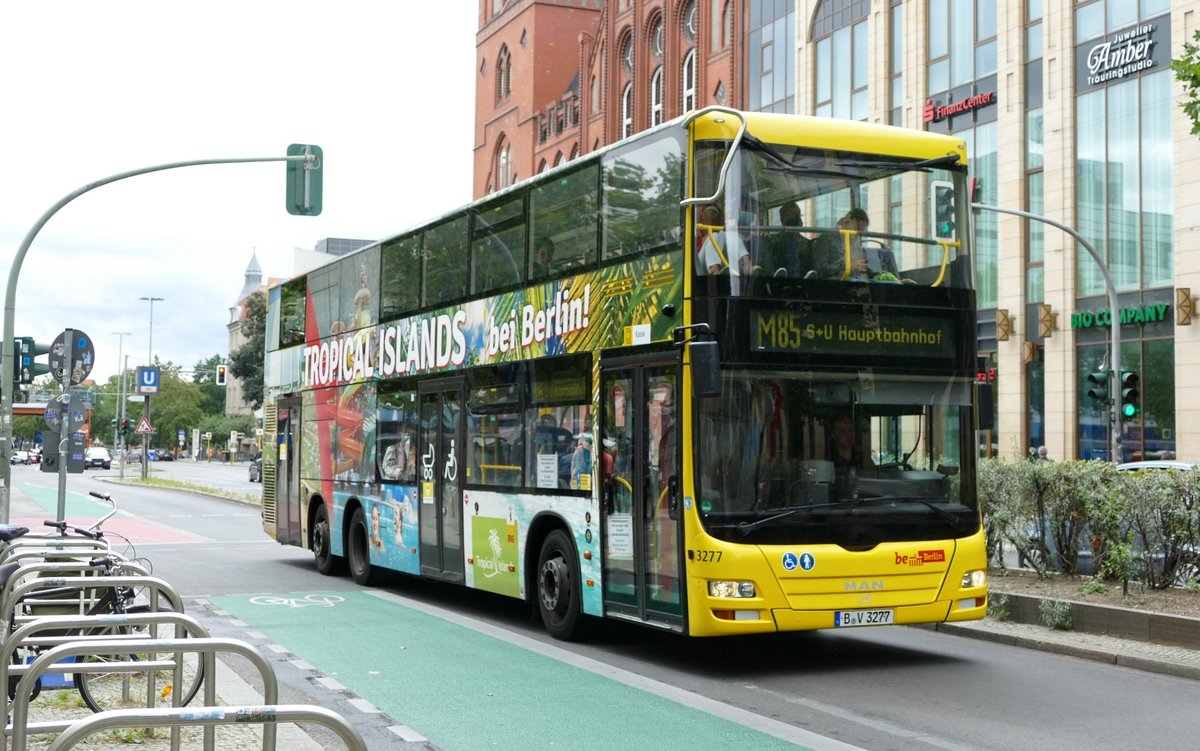 MAN Lion's City DD der BVG, '3277' (DL07), auf der Linie M85 in Berlin-Steglitz, im Juli 2020 unterwegs.
