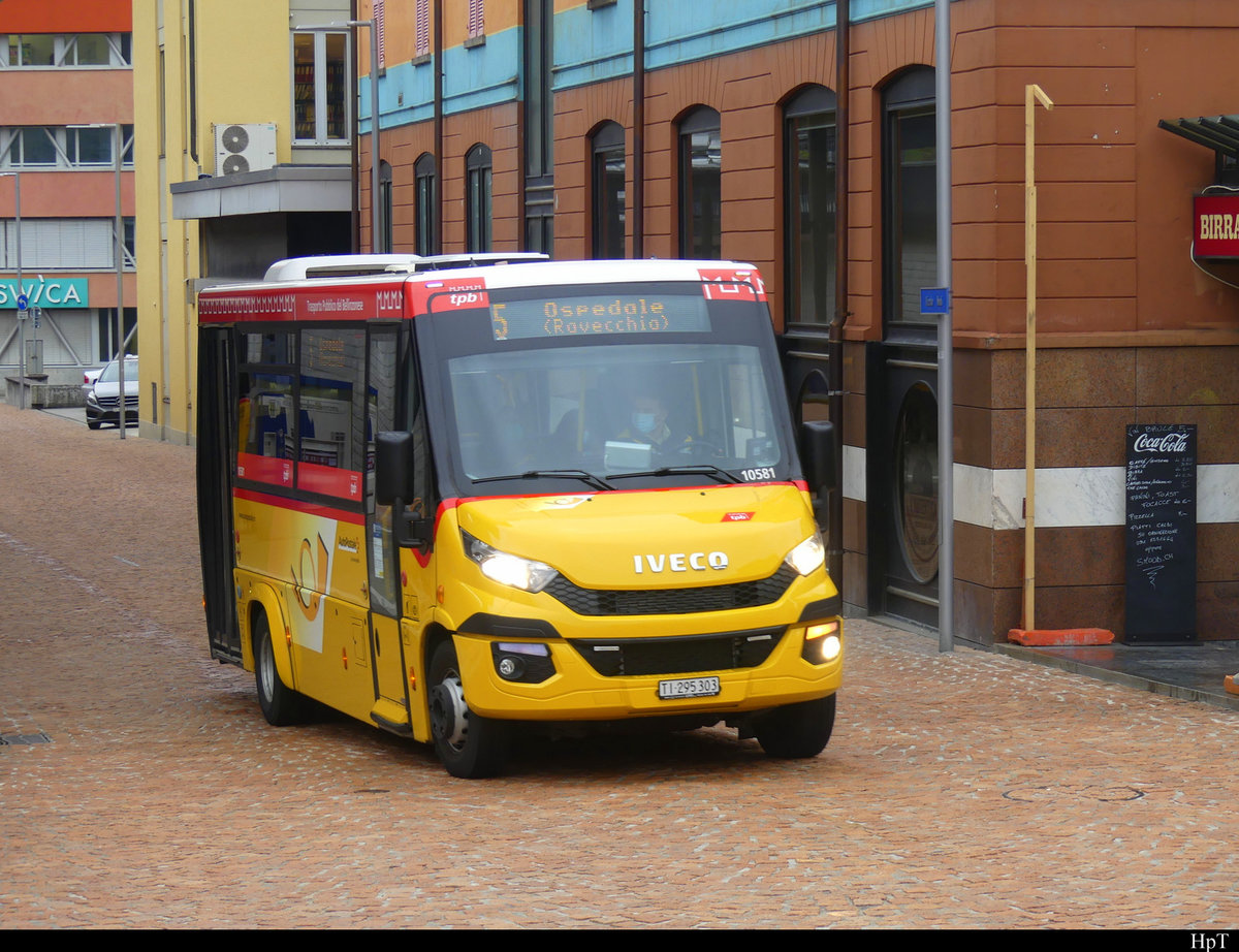 Postauto - Iveco Citytour TI 295303 in Bellinzona bei den Bushaltestellen beim Bahnhof am 12.02.2021