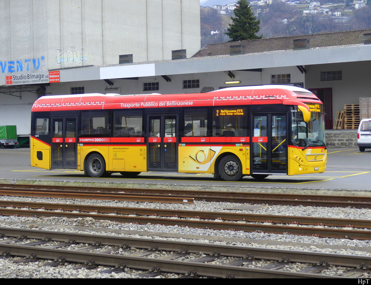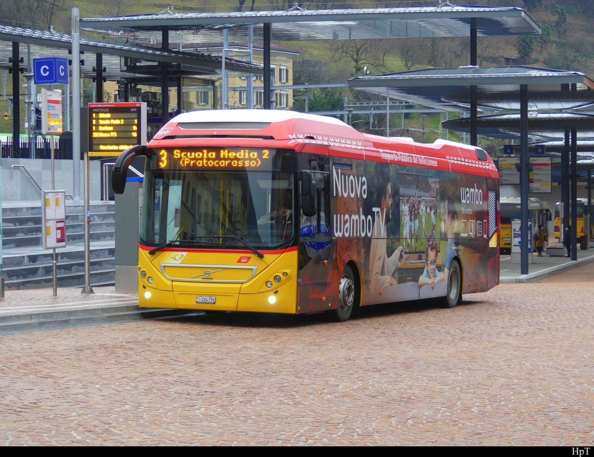 Postauto - Volvo 7900 Hybrid TI 264792 in Bellinzona bei den Bushaltestellen beim Bahnhof am 12.02.2021