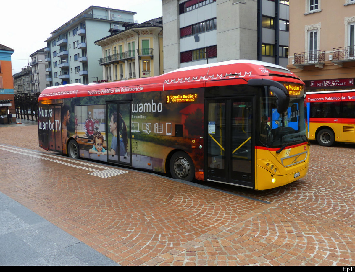 Postauto - Volvo 7900 Hybrid TI 264796 in Bellinzona bei den Bushaltestellen beim Bahnhof am 12.02.2021