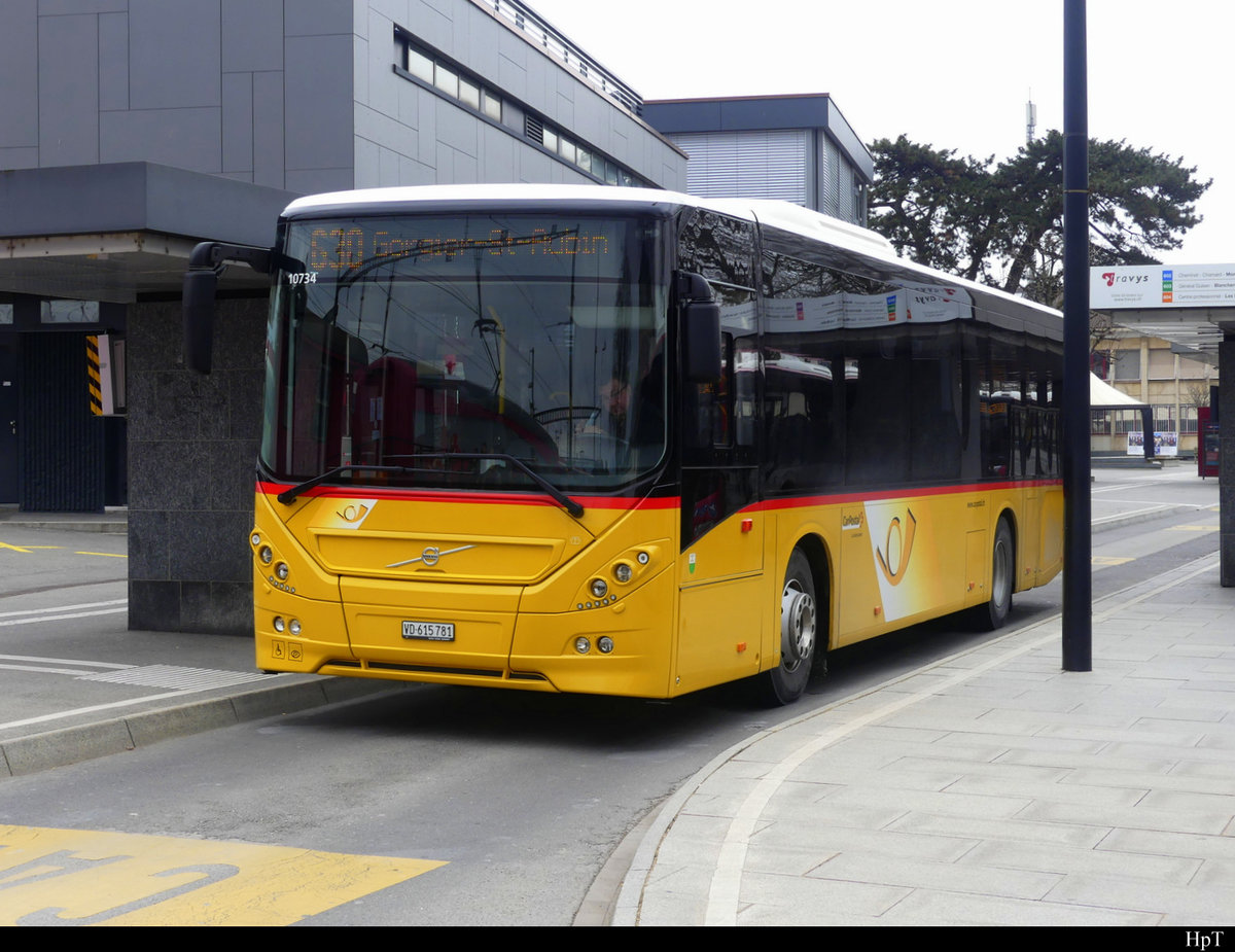 Postauto - Volvo 8900 VD 615781 bei den Bushaltestellen beim Bahnhof von Yverdon les Bains am 13.02.2021
