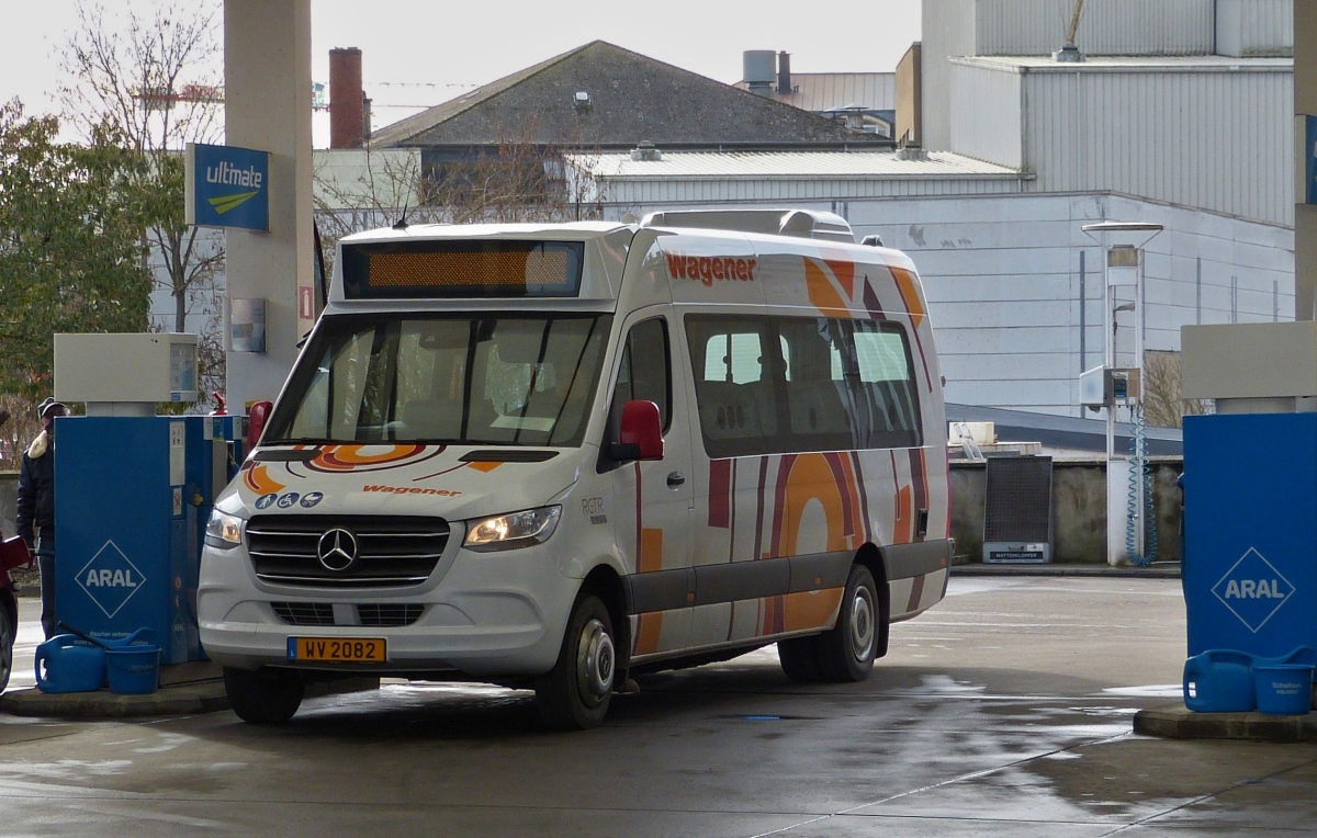 WV 2082, Mercedes Benz Sprinter von Voyages Wagner gesehen an einer Tankstelle in Ettelbrück. 02.2021