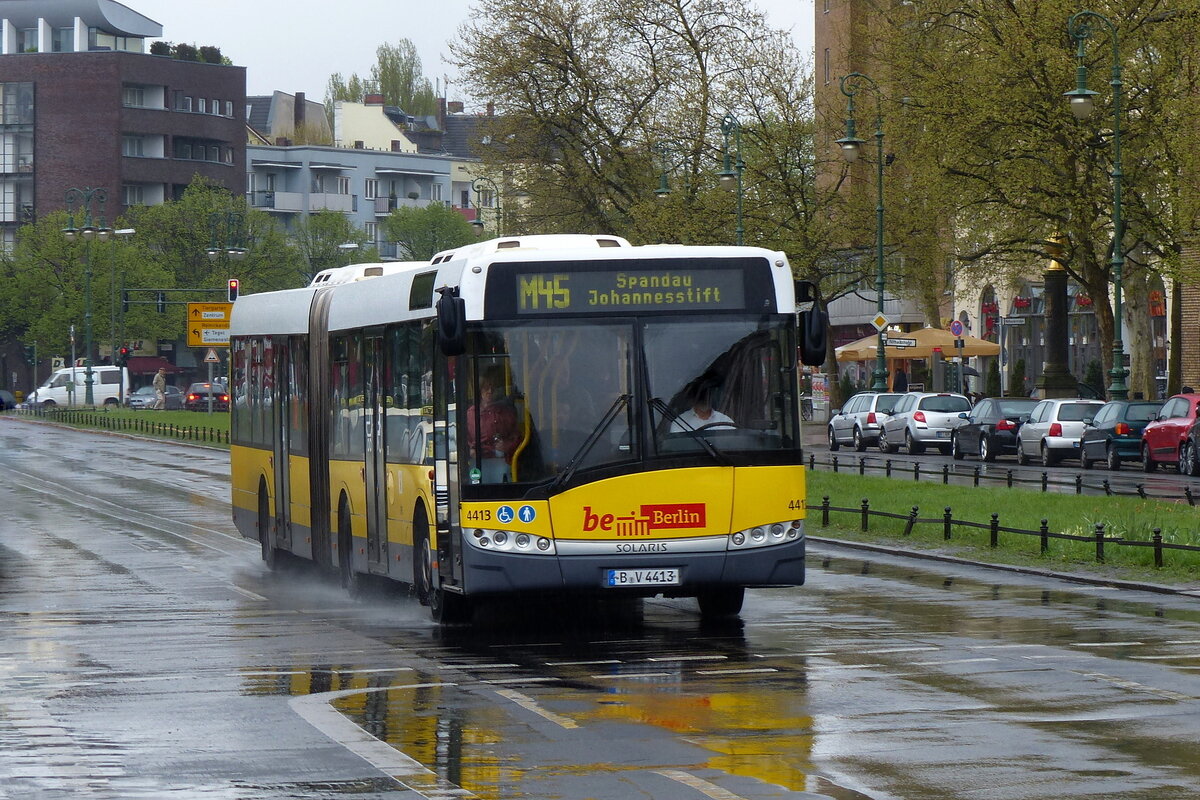BVG Berlin_ zum Betriebsende des Urbino 18, Wagen '4413' [GN09] hier als M45 unterwegs durch Berlin im April 2015. [Solaris]