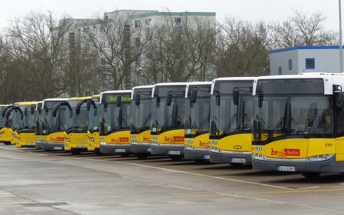 BVG Berlin, zum Betriebsende des Solaris Urbino 18 [GN 5,7,8 und GN9], hier in Berlin-Spandau, Februar 2016. [ Solaris Urbino 18, Wagen '4369'].