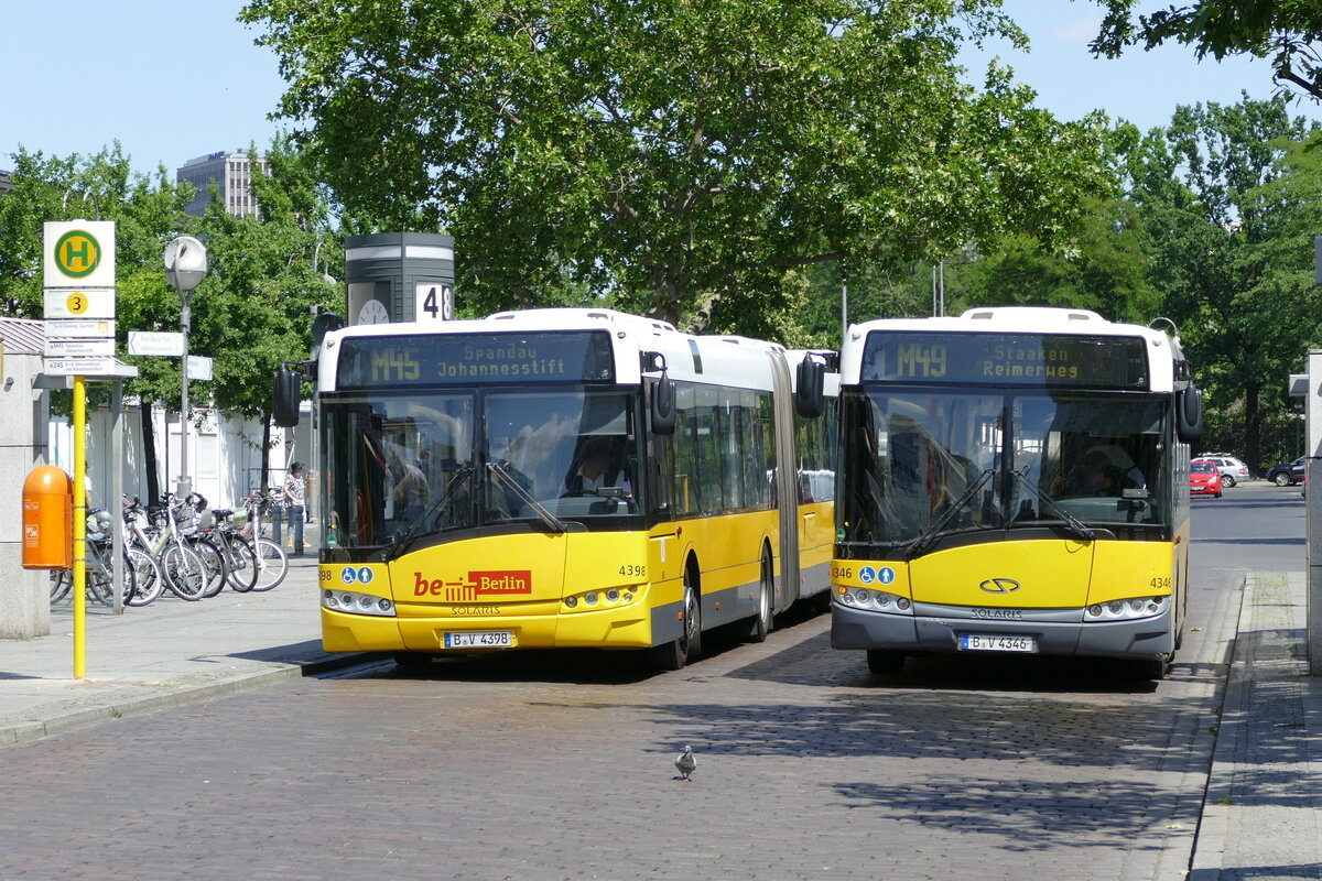 BVG Berlin, zum Betriebsende des Urbino 18 [GN05, 7, 8 und 9], die Wagen '4398' & '4346' als M49 und M45, in Berlin/ Hardenbergplatz im Juni 2020. Teil I.