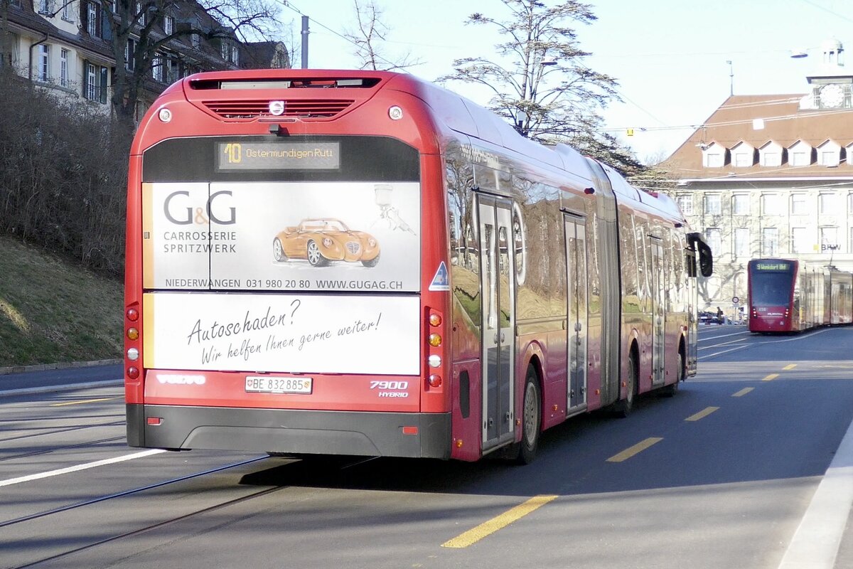 Nachschuss vom Volvo 7900 Hybrid 882 von BERNMOBIL am 26.2.22 in der Kornhausstrasse.