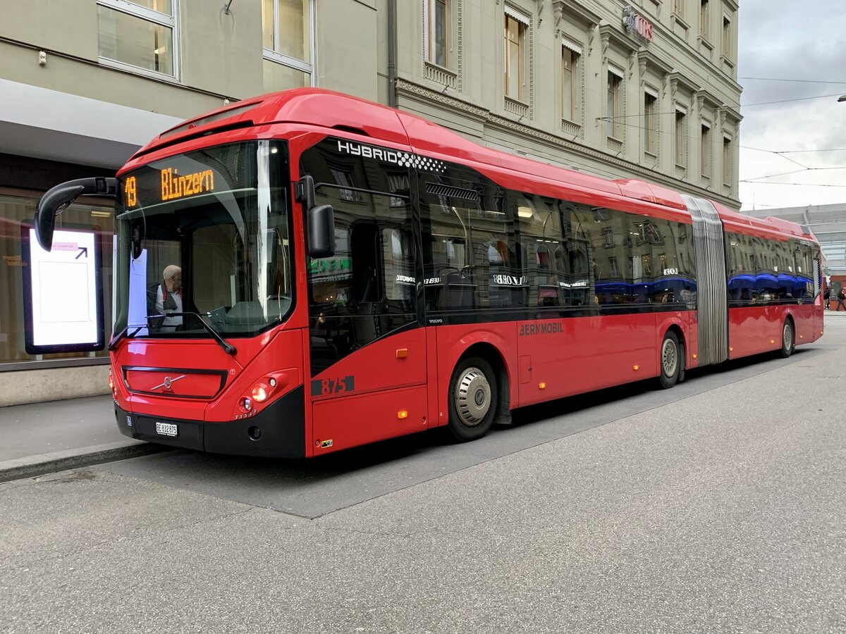 Volvo 7900 Hybrid 875 von BERNMOBIL am 24.2.22 beim Bahnhof Bern.