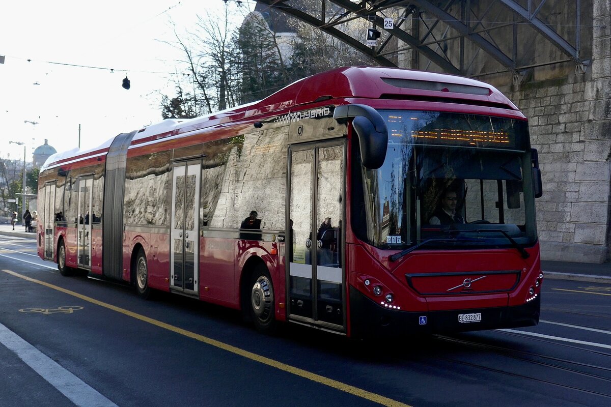 Nachschuss vom Volvo 7900 Hybrid 877 von BERNMOBIL am 26.2.22 in der Klrnhausstrasse.