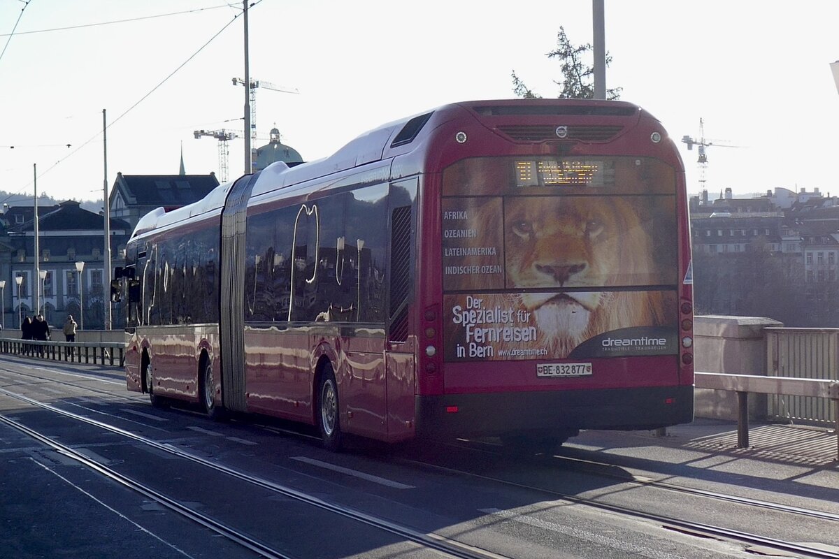 MB Citaro Facelift CNG 853 von BERNMOBIL am 26.2.22 auf der Kornhausbrücke.