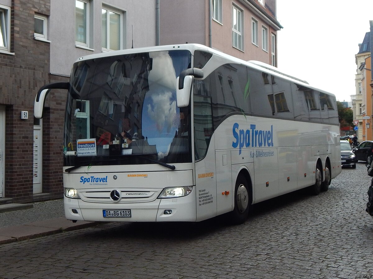 Mercedes Travego von Kopp Reisen (ex Klemens Reisen/D) aus Deutschland in Stralsund am 14.09.2019