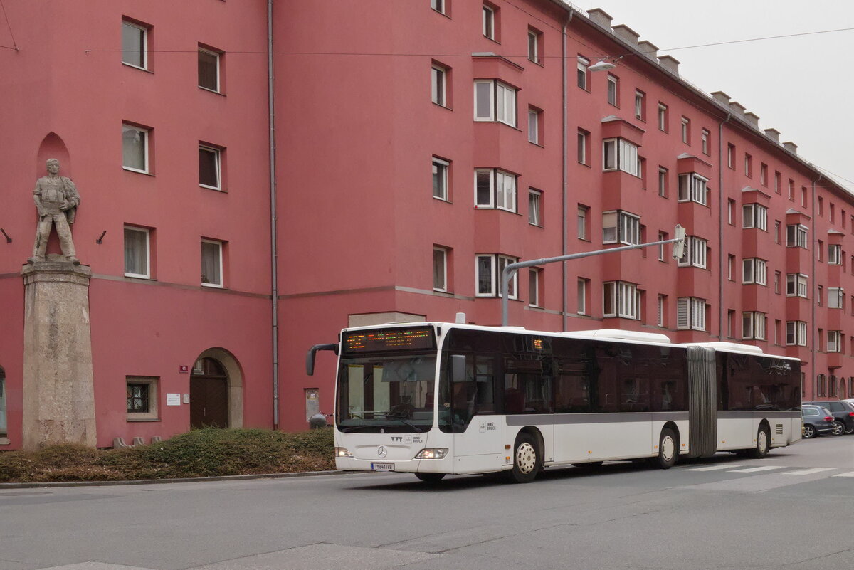 Graz. Aufgrund von Bauarbeiten auf der Steirischen Ostbahn wird verkehrt auf diesem Streckenabschnitt ein Schienenersatzverkehr. Ein Mercedes Intouro von Komet wartet hier auf die Abfahrt als SV530 beim Grazer Ostbahnhof.