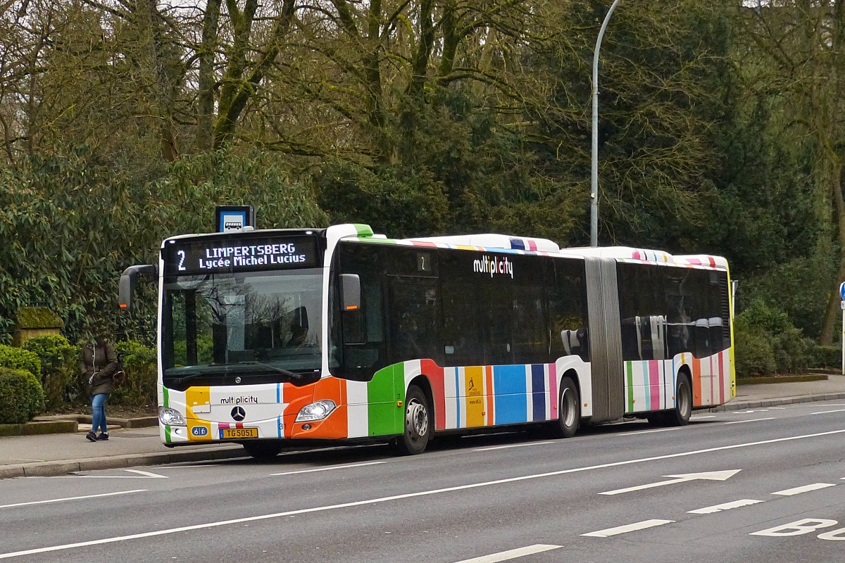 TG 5051, Mercedes Benz Citaro des VDL, an der Haltstelle „Fondation Pescatore“ in der Stadt Luxemburg. 16.03.2022