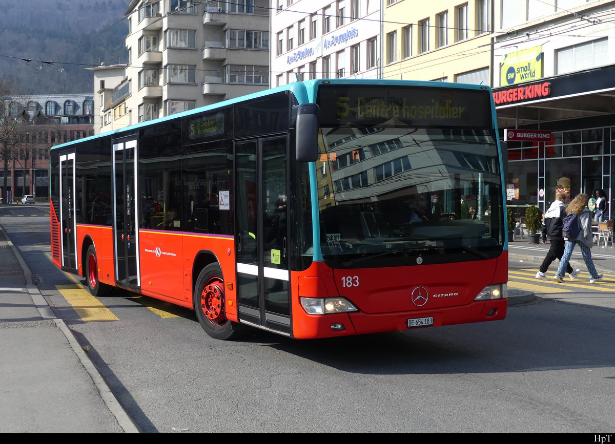VB Biel - Mercedes Citaro Nr.183 unterwegs in der Stadt Biel am 19.03.2022