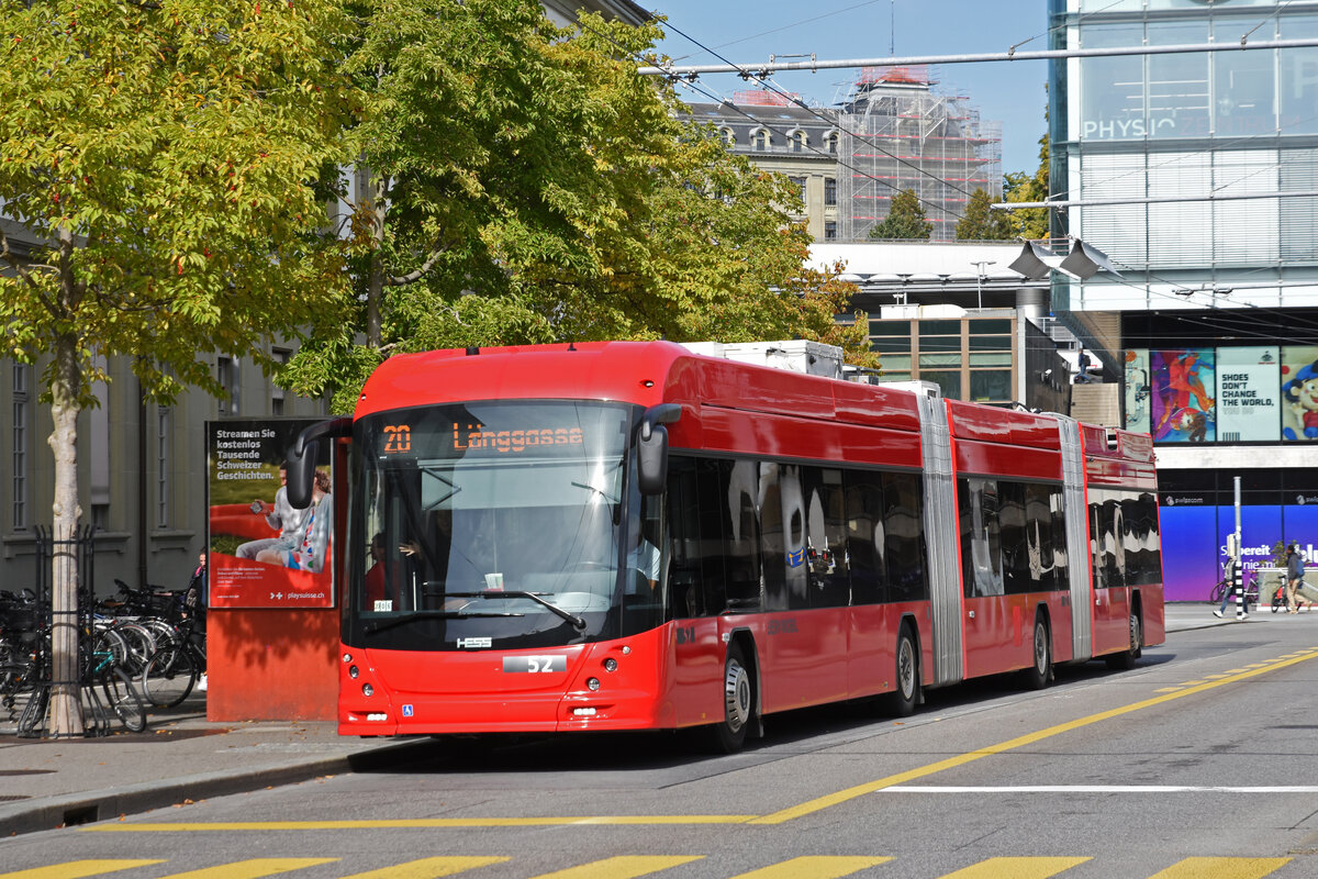 Doppelgelenk Trolleybus 52, auf der Linie 20, bedient am 04.10.2022 die Haltestelle beim Bahnhof Bern.
