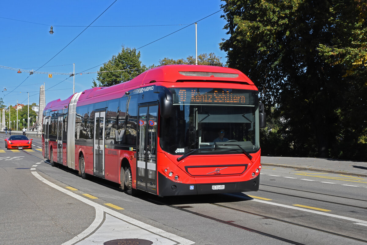 Volvo Hybridbus 883, auf der Linie 10, fährt am 04.10.2022 zur Haltestelle Zytglogge.